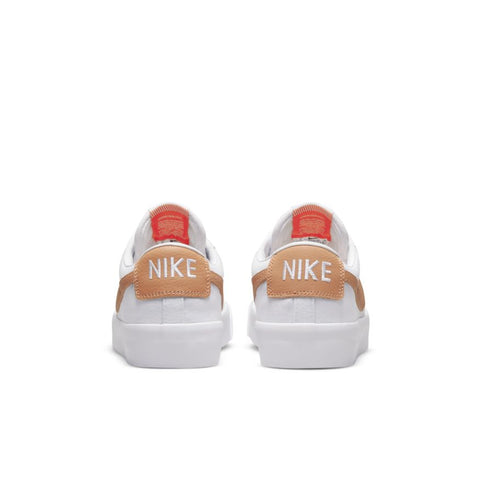 With supple white leather and light cognac accents, the Nike SB Zoom Blazer Low Pro brings an OG classic vibe to any look. Orange details on the insole and tongue label finish the look off while nodding to the color of Nike's original shoebox, which made its debut in 1971.